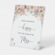 Cette magnifique enseigne de piédestal est l'ajout parfait à toute douche nuptiale, avec un design à la fois chic et ludique. L'arrière - plan aux délicates aquarelles à motifs floraux dans les tons de violet roux et de rose disposé en bordure du panneau. La typographie est élégante et féminine, avec les mots "Devinez combien de baisers" dans une police de script fluide. Ce panneau de piédestal est non seulement une activité ludique et attrayante pour les invités, mais aussi une décoration étonnante qui ajoute une touche de romantisme et de fantaisie à la douche nuptiale. Voir la collection complète ici : https://www.zazzle.com/collections/elegant_wildflower_boho_modern_bridal_shower-119255399283077171