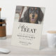 Give guests a fun, dog treat favor to take home to their pets with this Dog Photo Wedding Treat Favor Pedestal Sign! This design features a circle photo frame with script font to include your custom, wedding favor note. Have a custom request? Message me!
