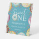 Ce piédestal à thème dessert fait partie de la collection Sweet One, qui permet à vos invités de savoir où laisser leurs cartes et cadeaux. Le piédestal peut être personnalisé avec le nom de votre petit. Le design comprend des beignets d'arrosage d'aquarelle délicieux.