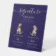 Dinosaur thème Mariage marié et marié signature bar boissons signe bleu marine arrière - plan avec drôle T-Rex Bride & Groom dinos et blanc clair élégant script moderne Ajouter une touche de plaisir jurassique à votre grand jour avec ce drôle de signe d'accueil mariage à thème dinosaure avec une aquarelle whimsical illustration d'une mariée et mariée T-Rex dans des tons chauds marron et beige idéal pour un Juré mariage à destination ic, le tout face à un arrière - plan bleu marine, cette signature unique mariage signature boissons est le parfait mélange d'humour et d'élégance. Le panneau de cocktails signature marié et marié mariage personnalisable présente une typographie moderne et blanche et des polices de caractères élégantes, ce qui facilite la personnalisation avec les noms de mariée et mariée, la date du mariage et leurs propres boissons signature personnelle. Idéal pour les mariages en plein air de destination jurassique, les mariages de musée ou les cérémonies d'été, ce panneau d'accueil mariage amusant donne le ton pour un bon moment préhistorique rugissant célébrant le couple heureux. L'oeuvre originale de Catherine Sweetman en fait un design exceptionnel pour tout couple qui cherche à mettre en valeur sa personnalité et son amour du dinos