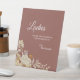 Ce Rose Dusty Boho d'automne signe de piédestal de chambre pour mariages dames combine une ambiance antique avec un look rétro bohème fleur sauvage. Les élégants fleurs sauvages beiges neutres en plus du rose poussiéreux, l'arrière - plan mauve, avec sa typographie calligraphique classe, permettent un thème formel mais sauvage et floral, de célébration du mariage de style vintage.