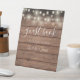 Cet élégant panneau de livres d'hôtes est parfait pour toutes les célébrations, avec de jolies lampes à cordes sur un arrière - plan en bois rustique. Conçu par Thisisnotme©