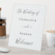 Un arrière - plan blanc. Avec le texte : Bienvenue au Mariage de. et bienvenue" Personnalisez et ajoutez vos noms. Texte noir.
