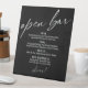Dans cette collection, j'ai utilisé une police élégante, moderne et manuscrite pour créer des mots et des phrases clés. Dans cette pièce, la typographie graphique se lit simplement "open bar" en haut et "cheers" en bas. Utilisez les champs modèle pour mettre à jour votre propre menu à votre guise. Cliquez pour customiser plus loin si vous devez ajuster l'espacement ou les tailles. Vous pouvez changer l'arrière - plan à n'importe quelle couleur que vous préférez. Vous devriez également vous sentir libre de changer la police de votre choix de boissons. // 158 //