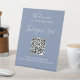 Elégant script manuscrit QR code mariage siège piédestal. Ajoutez l'URL du code QR et votre texte à personnaliser.