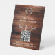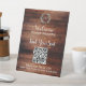 Elégant script manuscrit QR code rustique grange bois mariage siège du panneau de piédestal. Ajoutez l'URL du code QR et votre texte à personnaliser.
