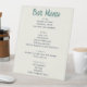 Écriture manuscrite Retro Vert Bleu Mariage Bar Menu Signal Pedestal