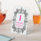 J'aime jouer à Bunco avec mes amis et aimer concevoir ces cartes de table pour votre propre groupe Bunco. Placez une carte de table Bunco sur chaque table pour aider vos invités à passer de table en table après chaque tour. Design élégant noir, blanc et rose. Tableau 1.