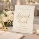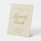 This elegant champagne gold wedding guest book sign invites guests to leave their heartfelt messages as they arrive at the celebration. The refined script typography and soft neutral background create a timeless look that blends beautifully with romantic reception décor, memory tables, and welcome areas. Designed for weddings, vow renewals, and milestone anniversaries, this pedestal display helps guide guests while adding a graceful decorative touch to the signing table. The champagne gold lettering and soft ivory background pair beautifully with classic ballroom receptions, garden weddings, and sophisticated anniversary celebrations.