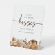 Cette élégante enseigne de piédestal "devinez combien de baisers" présente un beau cadre d'aquarelle boho peinte à la main, des feuilles d'orange et de terre cuite, des dahlias crème et beige, et de beaux roses couleur rouille sur un arrière - plan blanc. Trouvez les articles correspondants dans la collection de Fêtes des mariées Romance d'automne.