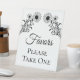 Grâce à ce magnifique panneau de table de faveur de mariage, vous accueillerez vos invités avec élégance et charme. Ce panneau est parfait pour les cérémonies minimalistes mariages ou rustiques, avec un arrangement délicat de tournesols et de fleurs sauvages en noir et blanc classique. Le script sophistiqué ajoute une touche de sophistication, tandis que la police facile à lire garantit que votre message - "Please Take One" - est clair et invitant. Idéal pour les fêtes de jardin d'été, de printemps et d'automne, ce panneau d'inspiration botanique se fond magnifiquement dans tout décor mariage. Élevez votre table de faveur avec cet ajout élégant et intemporel, assurant à chaque client se sentir apprécié.