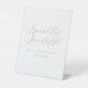 Cet élégant panneau sendoff mariage scintillant or est parfait pour un mariage simple. Le design minimaliste or et blanc présente une typographie romantique avec style glamour moderne. Personnalisable dans n'importe quelle couleur. Gardez le design minimal et élégant, tel quel, ou personnalisez-le en ajoutant vos propres graphiques et artwork. Personnalisez le panneau avec l'heure de sortie des couples.