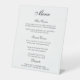 Placez ce menu mariage dans un endroit bien en vue pour vos invités. Ce menu élégant est sur un arrière - plan blanc avec du texte noir. Il est possible de le modifier pour qu'il corresponde aux couleurs de votre mariage. Les clients aimeront la combinaison d'une police de caractères mariage et d'éléments de menu faciles à lire. Le menu comporte trois sections pour les entrées principales, deux pour les entrées et deux pour les desserts. Si vous avez besoin d'aide pour personnaliser ceci, contactez le concepteur qui peut vous aider.