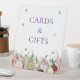 Feminine et moderne, cette enseigne Cards & Cadeaux utilise un design qui dispose d'un beau jardin de fleurs rose aquarelle et violette y compris les roses, tulipes, lavande et eucalyptus verdure avec des papillons de couleur vive et des abeilles bourdonnantes volant autour. Vous pouvez customiser tous les détails du texte et du placement graphique à vos besoins spécifiques.