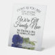 Ce magnifique guéridon autoportant fera savoir à vos invités qu'il n'y a pas de plan d'assise pour qu'ils puissent s'asseoir où bon leur semble. Il présente un design simple mais élégant, avec un seul rose bleu marine à longue tige réfléchissant dans une piscine d'eau. Texte : Venez comme vous êtes, restez aussi longtemps que vous le pouvez, Nous sommes la famille maintenant, donc il n'y a pas de plan de place. Un moyen parfait d'invitation vos invités à se mélanger et à se rencontrer.