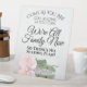 Ce magnifique guéridon autoportant fera savoir à vos invités qu'il n'y a pas de plan d'assise pour qu'ils puissent s'asseoir où bon leur semble. Il présente un design simple mais élégant, avec une seule rose rose rose rousse à long tige réfléchissant dans un bassin d'eau. Texte : Venez comme vous êtes, restez aussi longtemps que vous le pouvez, Nous sommes la famille maintenant, donc il n'y a pas de plan de place. Un moyen parfait d'invitation vos invités à se mélanger et à se rencontrer.