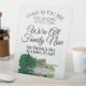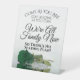 Ce magnifique guéridon autoportant fera savoir à vos invités qu'il n'y a pas de plan d'assise pour qu'ils puissent s'asseoir où bon leur semble. Il présente un design simple mais élégant avec un seul rose vert émeraude à long tige réfléchissant dans un bassin d'eau. Texte : Venez comme vous êtes, restez aussi longtemps que vous le pouvez, Nous sommes la famille maintenant, donc il n'y a pas de plan de place. Un moyen parfait d'invitation vos invités à se mélanger et à se rencontrer.