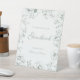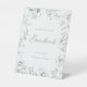 Elegant calligraphy sage green floral wedding guestbook pedestal sign.