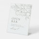 Illustration délicate à main élégante et détails de typographie de script moderne, en vert et blanc sauge foncé, simple et romantique. Grand panneau de bar ouvert mariage pour mariage rustique moderne, mariage de jardin de campagne et mariage boho simple en été et en hiver. Entièrement personnalisable avec n'importe quelle couleur pour correspondre à votre thème mariage. Voir toutes les pièces correspondantes dans la collection.