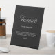 Affichez des cadeaux de remerciement pour vos invités avec notre enseigne mariage Favors minimaliste classe (avec orthographe UK/CA/AUS). Elevez l'élégance de votre journée spéciale avec cette pièce magnifiquement conçue qui complètera tout thème mariage formel en toute transparence. Le design est composé d'un élégant script blanc et de lettres classiques sur un arrière - plan noir. Vous pouvez également modifier les couleurs du texte et de l'arrière - plan pour qu'elles correspondent à votre thème et à votre papier à lettres mariage. N'oubliez pas d'ajouter ce magnifique panneau Favors à votre décor mariage pour une touche de sophistication et de style. N'hésitez pas, commandez le vôtre aujourd'hui !
