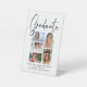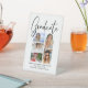 Élégant Script Multi Photo Graduation Graduate Tabletop Pedestal Signer présente cinq de vos photos préférées de votre collège ou de lycée avec le script tourbillonnant moderne de calligraphie noire superposition "Graduate". Décor de fête de remise de diplômes simple, chic et classe. Créé par ©Evco Studio www.zazzle.com/store/evcostudio
