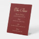Elegant Script Wine Red Wedding Bar Menu Pedestal Sign. Personalize with all of your wedding drink selections, including signature cocktails, wine, beer, and spirits.
