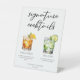 Cette élégante enseigne à guéridon en soirée propose une simple typographie noire au-dessus de 2 de vos boissons préférées et de leurs ingrédients pour votre bar mariage haut de gamme. Un dessin chic Dark & Stormy et Gin and Tonic ajoute une touche amusante à votre menu de bar. Complétez avec les noms du couple et la date de leur réception.