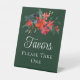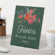 Ce magnifique panneau de noces de faveurs de Noël présente une belle aquarelle de fleurs de poinsettia rouges et de feuilles de pin pour les vacances. Elégant panneau de piédestal de mariage d'hiver en vert pour un événement de vacances. Jolie décoration fleurie de la réception. S'il vous plaît, prenez une faveur.