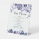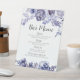 Des roses violets d'aquarelle élégants encadrent ce menu de bar mariage chic. Le guéridon du menu des boissons sur mesure est orné d'une belle bordure de fleurs violettes et de feuilles botaniques de lavande en haut et en bas. Superbe décor de table fleurie pour un événement en soirée.