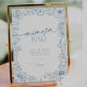 Levez votre douche nuptiale avec notre élégant panneau bleu Mimosa Bar avec chinoiserie florale. Conçue avec une touche contemporaine, cette pièce de décoration personnalisable ajoute une touche d'élégance à votre Fête des mariées thématique "Un peu de bleu avant moi". Invitation correspondante, cartes de boîtier et panneaux sont également disponibles dans cette collection.