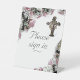 Le design présente des images élégantes et réalistes de roses roses douces et d'hydrangées blanches qui agrémentent les bords. L'image d'un Crucifix argenté est affichée en haut à droite. Votre texte est présenté dans une belle police couleur argent au centre. Très élégant. Conçu pour coordonner avec la "Collection Elégante de Fêtes des mariées Catholiques".