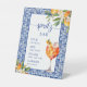 Cette invitation à une douche de mariée présente un thème bleu vif avec des agrumes.