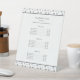 Simplement élégant noir, blanc et gris argenté professionnel toilettage d'animaux d'affaires menu guéridon avec empreintes de pattes noirs et gris. Personnalisez-le avec votre nom, profession, slogan et services offerts.