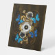 Signe De Table Engrenages à vapeur et papillons bleus