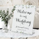 Eucalyptus aquarelle de verdure le long de la partie supérieure et inférieure avec un nom et la date de mariage avec une belle écriture calligraphique cursive pour accueillir vos invités à votre mariage.