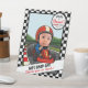 Race into party organization with this fun and functional Fast ONE Gift Drop-Off Pedestal sign! Featuring a high-speed race car driver illustration with your child’s face, a racetrack background, bold black-and-white checkered frame, and a personalized round label with race flags, Fast ONE lettering, and event date, this sign adds energy and charm to your gift table.
