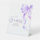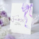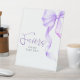 Faisant partie de l'élégante suite d'invitation à l'arc violet, cette douche nuptiale moderne (ou baby shower, fiançailles, etc.) signe de piédestal ajoute une touche élégante et coordonnée à votre célébration. Doté d'un ruban d'aquarelle violet clair gracieux le long du bord, il est parfait pour guider les invités à la table des faveurs, ce panneau rassemble beauté et fonction — un petit détail mais significatif qui cravate votre décor sans heurts.