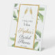 Ces Félicitations à l'amour Champagne Fête de mariage sur Pied Panneau comportent deux verres de champagne pétillants dans un toast à l'amour. Un élégant cadre géométrique doré avec des accents botaniques de feuilles vertes entoure le texte. Personnalisez ce panneau de bienvenue de fiançailles avec le nom de la future mariée et la date de votre événement.