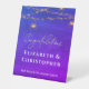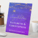 Elégant et moderne style mariage fiançailles félicitations table de félicitations pour le couple nouvellement engagé. Souhaitez à votre couple heureux une citation inspirante "Puisse votre amour toujours grandir" ou autre message personnel. Monogramme avec les noms des couples pour créer votre propre signe de fête. Parfait pour les fêtes de mariage aussi ! L'élégant panneau comprend des lampes à thé modernes avec un arrière - plan noir bleu à violet. Style typographique félicitations texte.