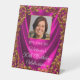 Fête d'anniversaire fuchsia femmes et or signe de bienvenue avec photo et de beaux tourbillons en or sur un joli arrière - plan satin fuchsia. Ce magnifique panneau d'accueil photo violet et or est facilement customisé avec le texte de votre choix. Vous pouvez également supprimer l'arrière - plan satiné et ajouter la couleur de votre choix.