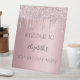 Un signe pour une fête d'anniversaire girly et glamour de 50ème (ou tout âge). Un arrière - plan rose vif avec des gouttes de parties scintillant, la peinture goutte à goutte. Personnalisez et ajoutez un texte, nom et âge 50. Le nom est écrit avec un script de style moderne écrit à la main.