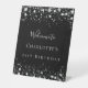 Signe De Table fête d'anniversaire noir argent étoiles bienvenue