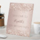 Un signe pour une fête d'anniversaire girly et glamour de 50ème (ou tout âge). Un arrière - plan métallique à l'aspect faux rose à la parties scintillant. Personnalisez et ajoutez un texte, nom et âge 50. Le nom est écrit en or rose foncé avec un script de style moderne écrit à la main.