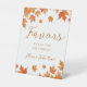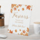 Ajoutez une touche de charme à votre douche nuptiale d'automne avec cette Fête des mariées d'automne personnalisée Favors Pedestal Sign. Parfait pour afficher par votre table de faveur, ce panneau vient compléter les idées douillettes de la douche nuptiale et les thèmes d'automne. Incontournable pour les idées élégantes de douche nuptiale d'automne, il apporte chaleur et style à votre célébration.