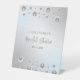 Panneau de Fête des mariées moderne et simple avec perles blanches bordé d'un dégradé gris arrière - plan et texte calligraphique dynamique.