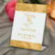 Créez votre propre signe avec du texte personnalisé. Customisez cet élégant simple panneau d'anniversaire du 50e mariage en ajoutant les noms du couple et le texte personnalisé. La conception de grains de bois doré en haut et en bas sont mon genre de création pour vous. Mon concepteur original entrelacé coeurs accent l'écriture moderne design, "Célébrer 50 ans". Personnalisez la typographie à la mode pour vos besoins. Vous pouvez également changer le numéro pour un 25e anniversaire personnalisé, ou 10e anniversaire de mariage, 40e ou 60e ou tout autre anniversaire. Ce serait un joli signe pour vos jeux de fête, un livre d'or, ou un signe de bienvenue. Voir ma collection pour assortir le décor de table d'anniversaire du 50e mariage d'or et les verreries personnalisées commémoratives.