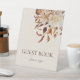 Panneau de piédestal de l'automne. Cet élégant panneau de mariage de livres d'hôtes présente des feuilles d'aquarelle peints à la main, orange et terre cuite, des dahlias crème et beige, et de beaux roses couleur rouille sur un taupe | arrière - plan beige. Trouvez les articles correspondants dans la collection Taupe Autumn Romance.