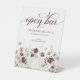 Boho automne open bar signe mariage avec une cascade rustique fleurs sauvages, de charmants citrouilles, et un modèle texte facile à personnaliser.