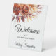 Bienvenue invités à votre fête d'anniversaire avec cet élégant design de fleurs d'automne en terre cuite orangée. Bienvenue et le nom du célébrant d'anniversaire est écrit dans une grande police tendance. Le reste du texte est un classique droit et une police. Très facile à customiser. Ce panneau est facile à utiliser et peut être placé dans une variété d'emplacements.
