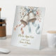 Fleurs de mariage cloches Rubans bleu rose Bleu Beau Signe de piédestal. Unique, beau, design moderne. Facile à customiser. Vous pouvez modifier le style de police, la taille et les couleurs. Éléments correspondants disponibles.